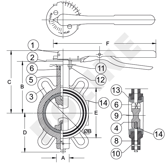 | Size (mm) | A | B | C | D | E | F |
