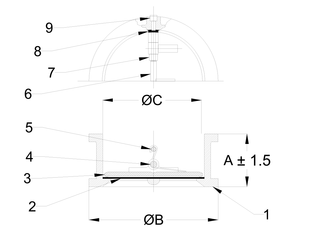 | Size (mm) | A ±1.5 | Ø B | ØC |