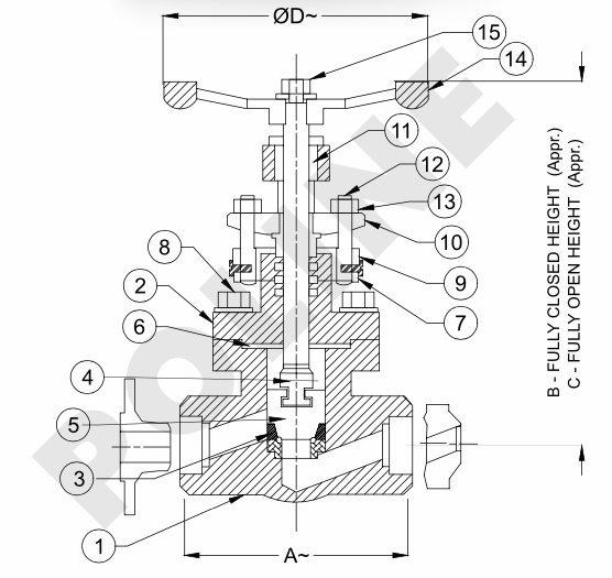 | 15 | Handwheel Nut | Alloy Steel | ASTM A193 GR. 2H | 1 |