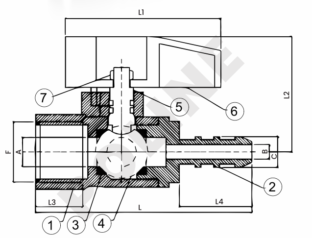 | Size(Inches) | DN | L | A | B | C | F | L1 | L2 | L3 | L4 |